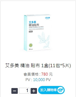 這樣安心優質的精油貼布, 會員價格只有市售的1/3, 一盒NTD780元/5片X10包, 平均一片只要15.6元, 還贈送10000pv的積點, 真是隨身必備的良方, 不論舒緩酸痛, 提神醒腦, 蚊蟲叮咬止癢… 妙用多多啊!