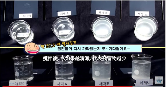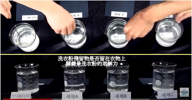以前用洗衣粉洗衣服時, 常發現衣服上有白色粉末狀的殘留物, 原來就是洗劑没有完全溶解, 造成無法完全清洗乾淨, 衣服上就會殘留洗劑的物質, 這些化學殘留物再接觸到皮膚, 就容易產生皮膚過敏的問題了, 所以我們來看看洗衣粉的溶解力實驗吧!