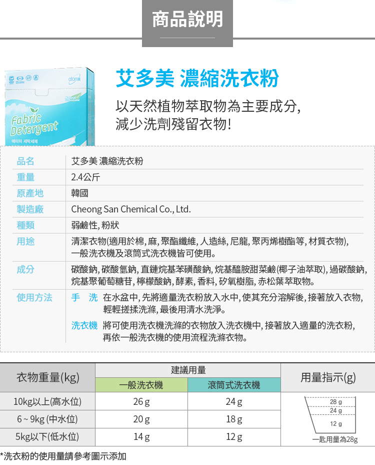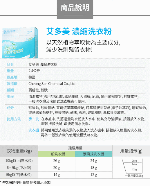 因為艾多美洗衣粉是超濃縮的, 記得使用量也很重要喔, 請參考使用量說明使用喔!