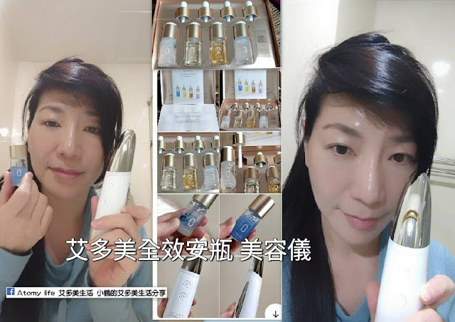 有人問說六部曲已經那麼好了, 為何還要搭配全效安瓶呢? 原來是因為在植物的美容成分裏面有一些是特別有效但是卻非常不易保存, 很容易就氧化了的, 例如孔雀石提取物, 高純度維他命C, 白黎蘆醇, 24K黃金…都是非常珍貴的, 除非有特殊的高科技技術才得以有效的萃取及保存, 艾多美全效安瓶就做到了, 一瓶小小的10ml安瓶, 打開之後在2周內就要用完, 才能確保其新鮮度和有效性, 平均一瓶用一周, 用完剛好一個月的療程, 如果可以再搭配EP美容儀使用, 效果更是大大提昇呢!