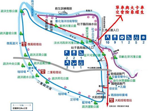 基隆河左岸*社子島六段河堤邊道路--自行車與大卡車交會險象環生,危險危險