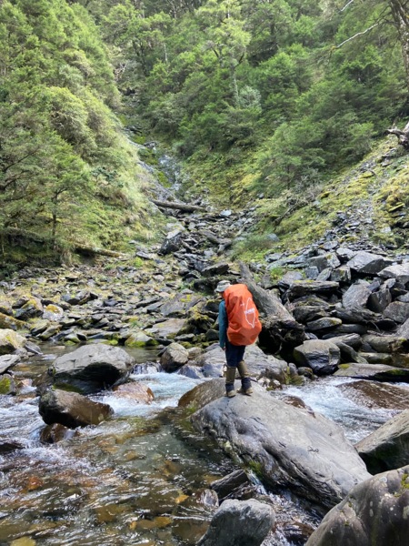 在冰冷的溪流過河