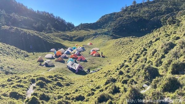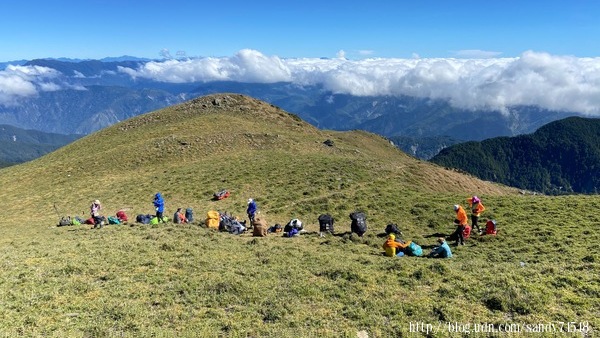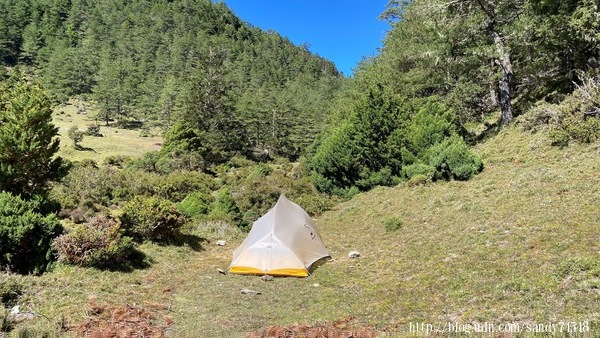 10/08:丹大溪源營地→望崖山→天南可蘭山→可樂可樂安山→郡東山→西鞍森林營地,右側下切背水 5公升→東北鞍營地→東郡大山(往返10分鐘) ps:營地風很大,要找避風一點的地方扎營
