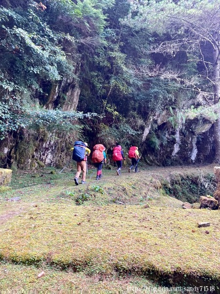 10/03:早上劉先生接駁,瑞穗林道17.5K,林道34.5水源取水,→34k登山口→沙武巒(0.4—0.5)扎營