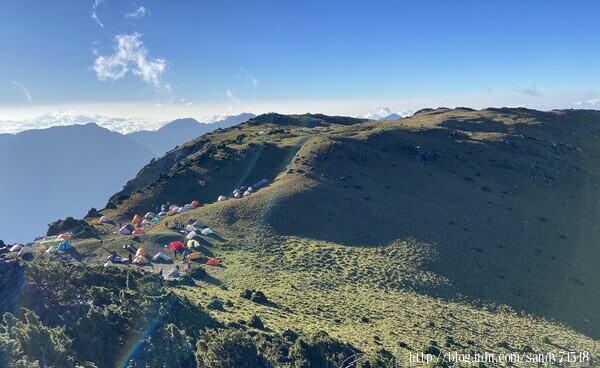 10/04:腰繞沙武巒山,接回舊路之後,過東源,西源營地,2935峰營地,背水5公升(有看天池)