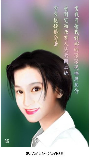 pic是媚一位摯友親手繪圖贈與媚的私人專屬書籤(只是不好14是..他把我給畫美了)