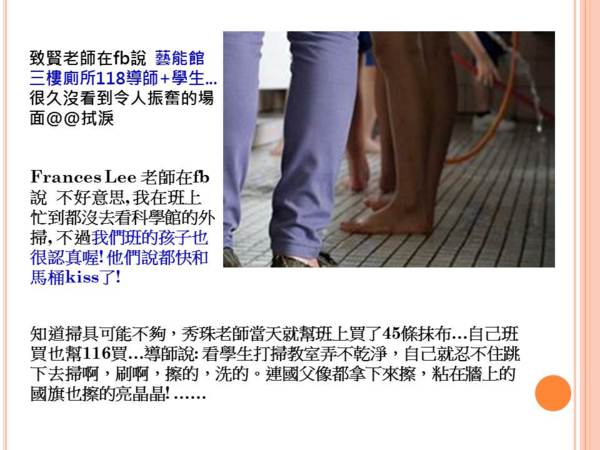 學生一半在教室、一半在廁所、還有三人被衛生組抽來刷地板、