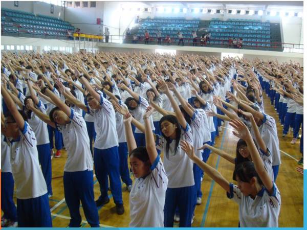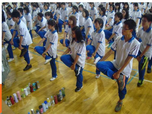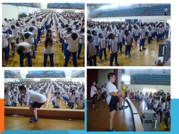 學生們在自強館做體健、急救訓練及有氧運動