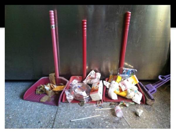 同學每天到科學館、藝能館、自強館上課,同學是過客,那裏的老師卻得每天忍受同學隨手留下的垃圾……