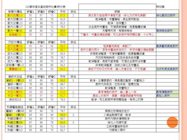 l 資訊中正樓組,由最貼心的301獲得第一,最有情趣的305居次,一直亮亮香香又整齊的315第三。