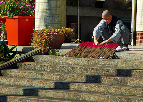 點一柱信念遙想用心願高舉著虔誠裊裊在風的邊緣伊的呢喃喚不住禪唱卻燃盡了檀香