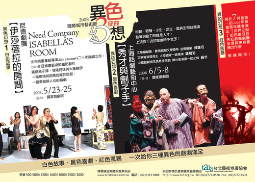 台北藝術推廣協會將以【異色幻想】為題,以白、黑、紅三種不同的顏色呈現來自三個不同國家的戲劇節目。