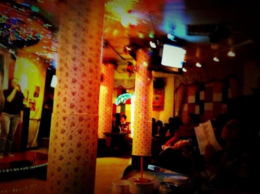 這是慢島劇團2010仲冬鉅獻《月孃》 突破傳統劇場形式,挑戰「卡拉OK」與「劇場」的結合,並以卡拉ok中三個女孩的成長故事為主線,拉出四十年的歲月,三個女人和一間風光不在的卡拉ok,故事裡有唱不盡的悲喜交雜人生曲調。除了現場可以吃小食點飲料,還可輕鬆坐在沙發上(合乎我原本想藉此休憩的慵懶心態)