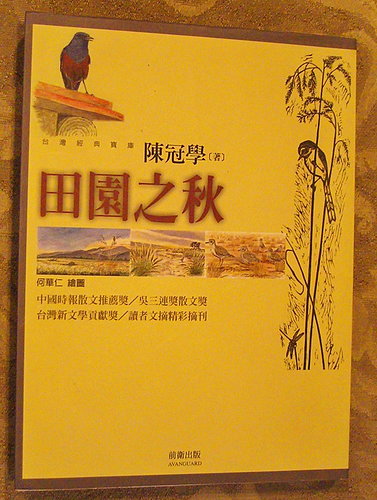 當我在書店中乍然見到這本散文集-- 田園之秋.... 心中萬分驚喜 , 直覺是尋到寶物了~~由陳冠學先生所著的田園之秋已經出書二十年了, (但我之前對這本書全無印象), 現在則由前衛出版社出版.