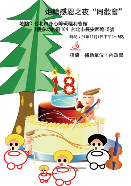 住大台北地區的朋友們,如當天沒約會或節目滴朋友們,請您務必撥空蒞臨也歡迎全家一起來、樓上揪樓下、親朋揪好友、厝邊揪隔壁一起前來為身障朋友們加油打氣。