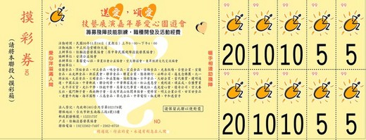 備 註︰義賣券每張壹佰元整,不僅能消費壹佰元且可參加"抽獎送好禮"活動,敬請大家能廣結善緣踴躍鼓勵親朋好友熱心購買義賣券,「炬輪技藝發展協會」會因有您的壹佰元捐助,而造福更多的身心障礙朋友。