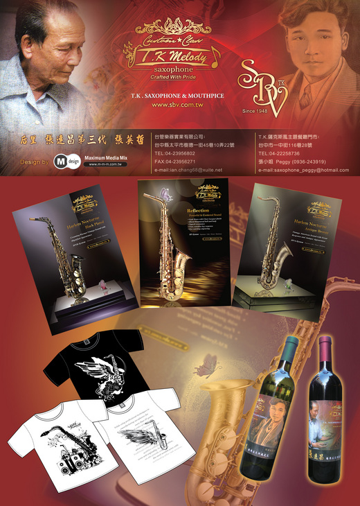 上一則: TK薩克斯風主題餐廳全新菜單出爐~一中街~迎新茶會.聚餐.同學會.生日慶生.來TK就對了下一則: 2008年10月18台中爵士音樂節即將開跑~~~TK薩克斯風攤位24號~即將推出阿公張連昌台灣薩克斯風之父~首次限量商品紀念T恤及限量紀念紅酒