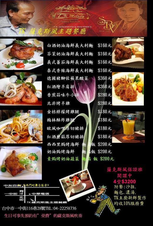 TK薩克斯風主題餐廳全新菜單出爐~一中街~迎新茶會.聚餐.同學會.生日慶生.來TK就對了