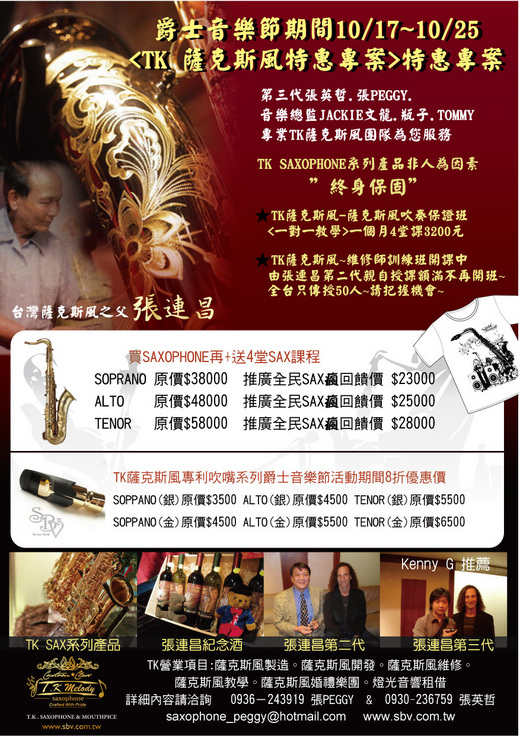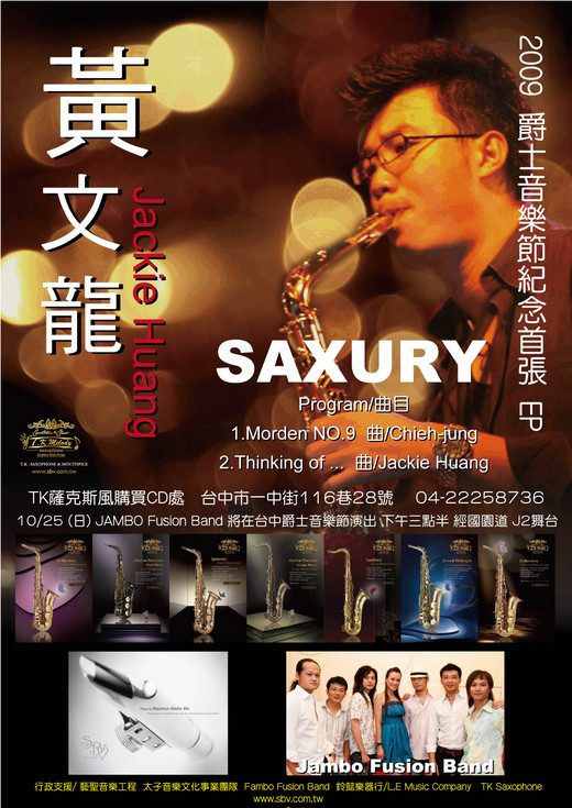 TK SAXOPHONE 2009台中爵士音樂節~TK薩克斯風製造。維修。教學。婚禮樂團~TK薩克斯風音樂總監JACKIE文龍首次推出台中爵士音樂節限量EP