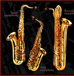 | Baritone-Sax 上低音薩克斯風 | Eb調,俗稱『巴里東』(要台語發音), Gerry Mulligan是少數幾位吹奏這種Sax而出名的大師。 因為音域很低,較少做為主奏樂器, 但是他是非常優美的低音樂器,在大樂隊中很重要。 |