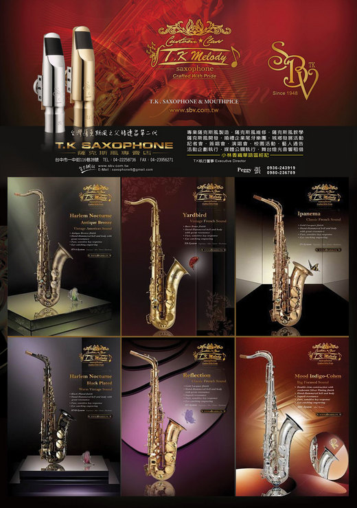 任何問題可洽:【Tk 薩克斯風】台中市一中街116巷28號04-22258736手機 0936-243919大姊PEGGY