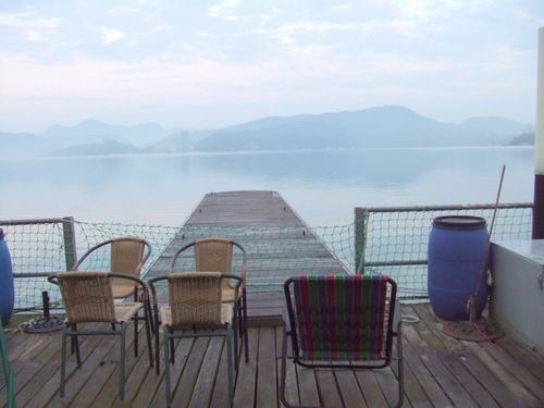 在德化社碼頭幾經聯繫找到可以送我們的船隻, 這才確認我們真的要離群索居了, 初看到湖面上錯落著一些小小船屋, 心理忐忑不安, 什麼尼斯湖水怪之類的畫面全部湧上心頭, 等船泊在一座較大的船屋旁, 女主人燦爛的笑靨迎上來時, 恐怖的想法才卸下來. 拍岸的水聲, 隨著遊人漸杳, 而歸於平靜, 幾公頃的水域就由我們獨享了!