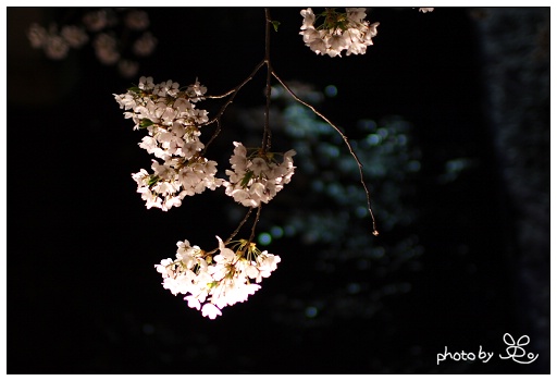 夜櫻在燈光的照射下, 特別的透亮細緻,