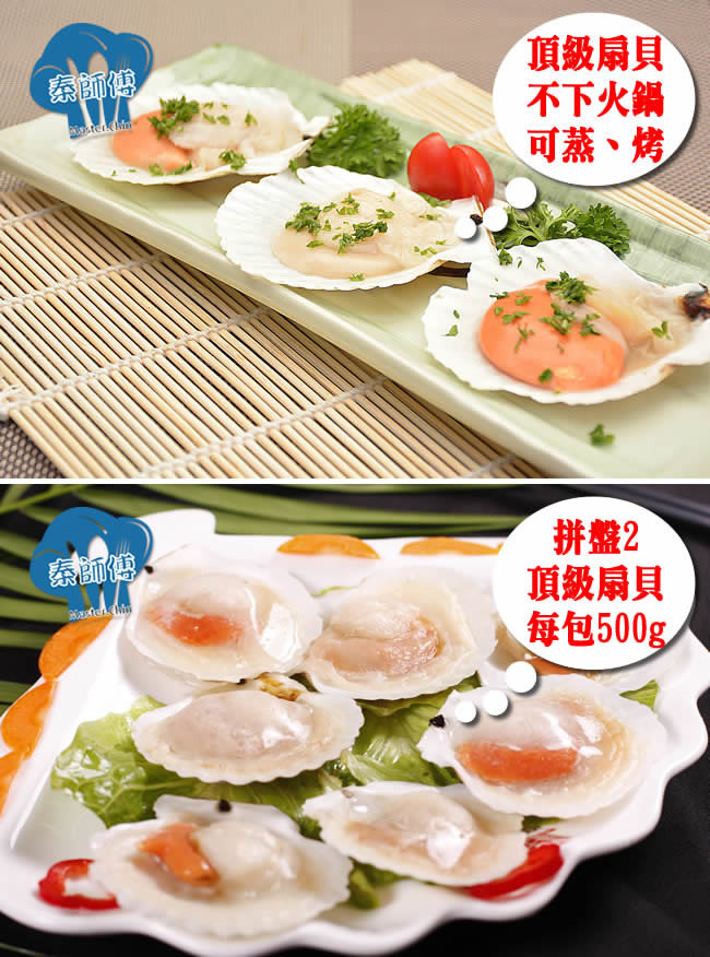 3、珍品扇貝2包,每顆8~9公分,入數6~8顆不等,每包重500克! 產地台灣。
