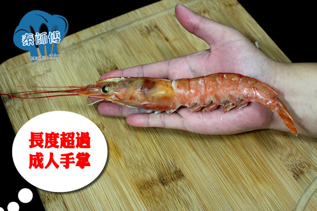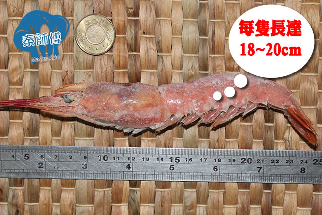 ●巨無霸尺寸,每隻長達18~20cm,重達50~70公克,保證每盒足重300克,約5~6隻大蝦。
