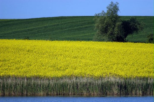 看著窗外那一片片黃色油菜花田、那一片片綠色煙草田,那一片片蔬菜田,黃、淺綠、深綠----真是一美麗的圖畫。