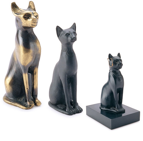 我以朝拜的心情,在「大英博物館」每天進進出出,不但去欣賞了原作的「貓神」,也蒐購了各時期不同的「貓神」複製品,大小五種之多,加上我家裡的兩件,共有七件了。