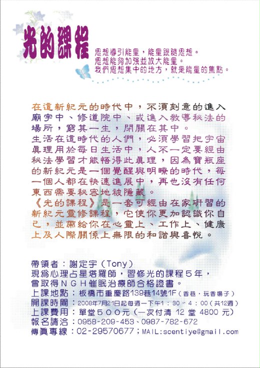 香氣、光、音樂皆是能量,期藉由不同的活動汲取那源源不絕生之奧妙。