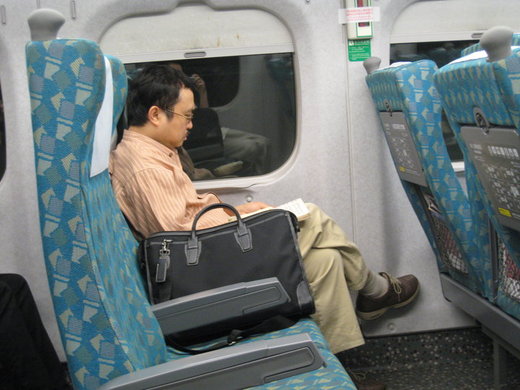 早上從高雄坐高鐵回台北, 鄧泰山一個人安安靜靜地研究今晚演出的樂譜;