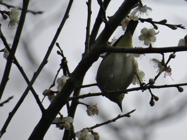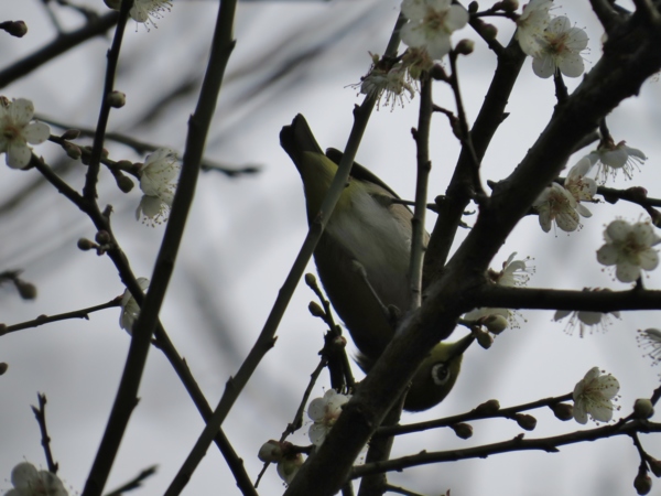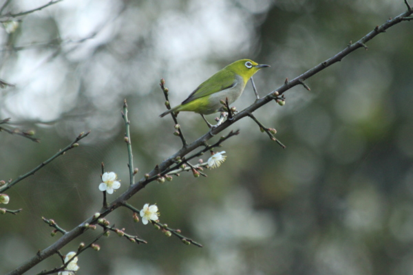 一群綠繡眼跳躍於梅花樹上,匆忙中補抓