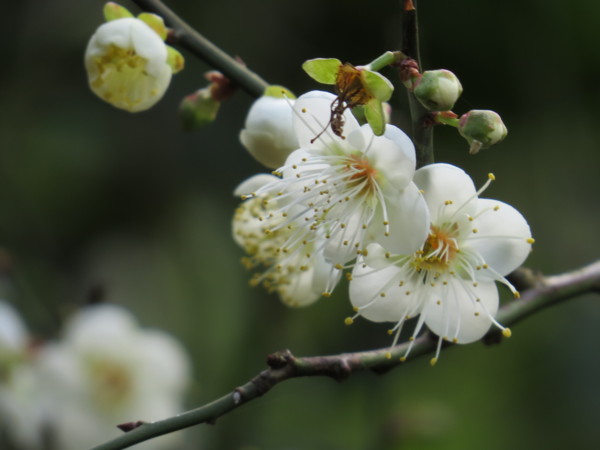 點點白梅怒放於綠叢