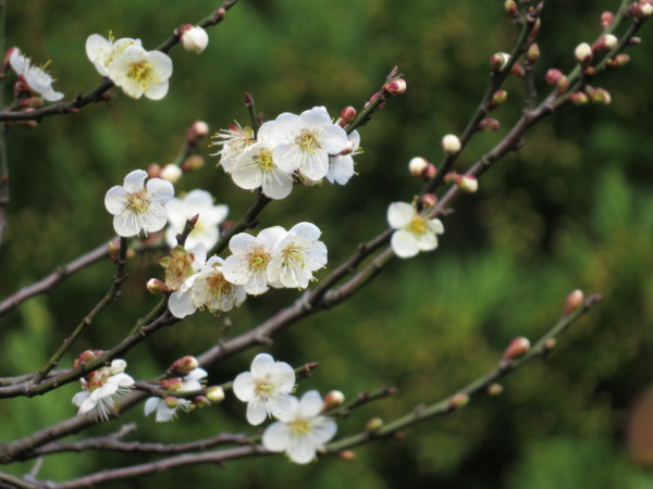 往常是櫻花開時才會上陽明山,看到的已是零零落落的梅花了。為了感受寒梅吐新蕊,清香漫山頭,2014選擇第一天上山賞梅去。