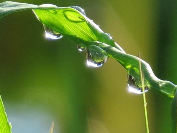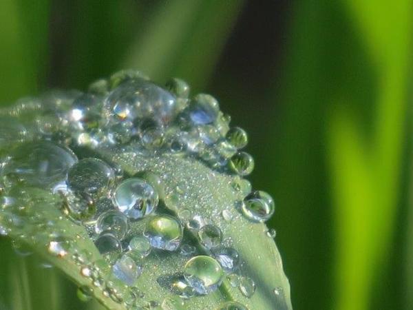 更喜看到大麥葉掛上大大小小水珠,我沉迷於這透亮水珠的倒影中