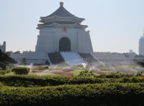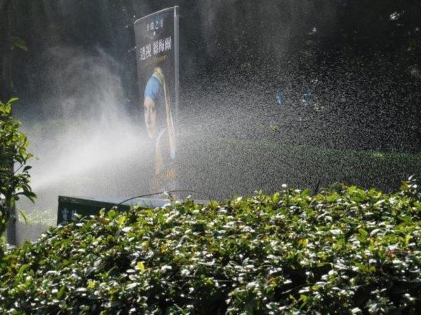 離去前,草坪上灑水器噴水,又有不同的景風呈現。