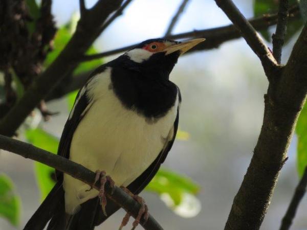 白頰椋鳥又名花八哥,難想像全身黑,僅因有一小白頰,就是白頰鳥了。
