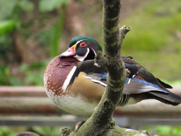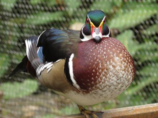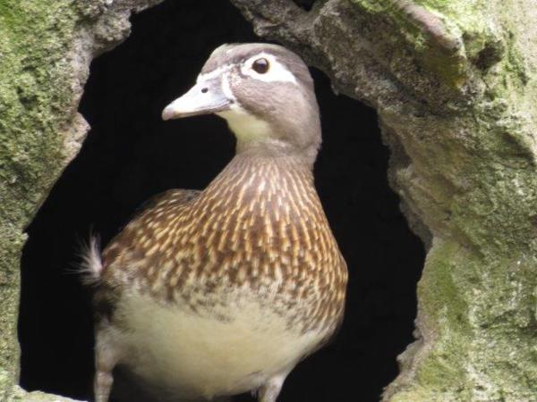 美洲木鴨竟上了欄桿和樹上,第一次看到鴨上樹了;還有母木鴨的大巢。