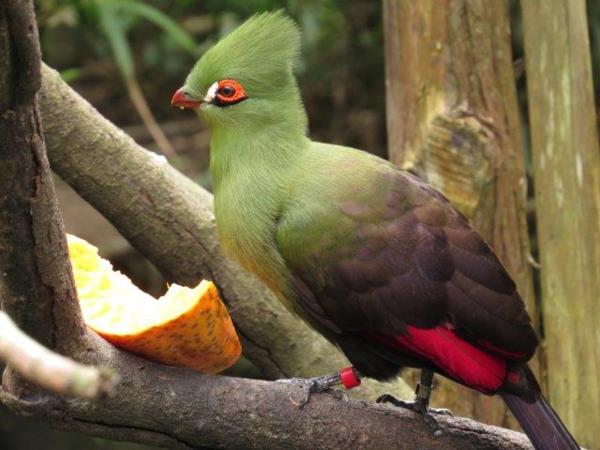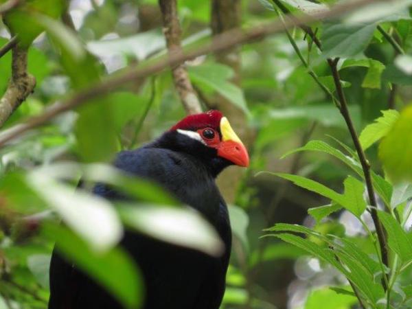 紫蕉鵑與綠絲冠僧帽鳥飛起來都看到了是紅翅膀。