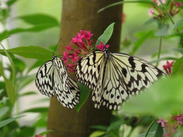 昆蟲館內則有平地少見的大白斑蝶和枯葉蝶