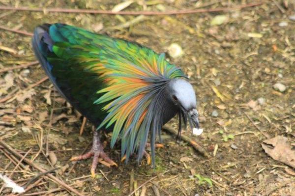 鮮亮綠與藍羽毛的綠蓑鴿,很少看見鴿子有如此漂亮長羽毛。