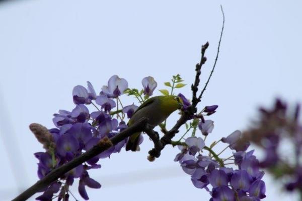 我沒追上另一伴腳步,所以錯失看到綠繡眼停於紫藤上了。