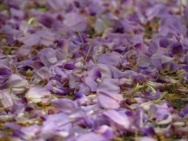 漫步在這串串紫花垂掛叢中,繁花似綿
