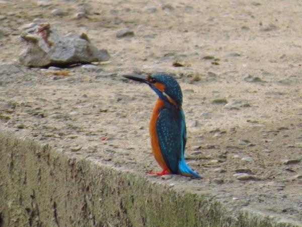 偶而想到要出去走走,就是為了再見其可愛靈巧翡藍姿影,上個月曾至植物園,看到荷池已呈乾涸狀,就知難覓翠鳥影跡,再轉往南港公園,見其從湖面飛轉至樹叢後就不見蹤跡了。
