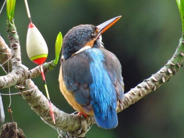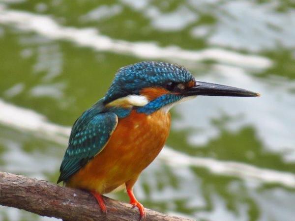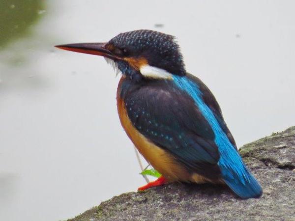 途中遇鳥總覺得靠機緣,然翡翠又稱魚狗或釣魚翁的翠鳥則是水鳥,湖泊、池塘和溪水為其生活地,去年在植物園、南港公園都曾見其嬌小藍棕色身影。