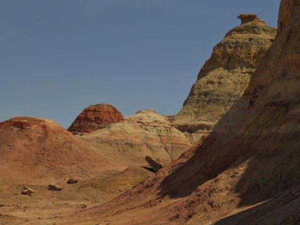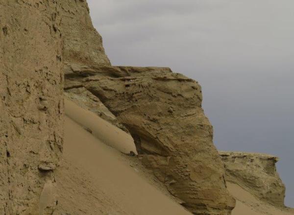 而我們參觀的奇特地貌似乎都是雅丹地貌,雅丹是維吾爾語“雅爾丹”的轉音,原來是維吾爾族對沙土風蝕地貌的叫法,意思是“陡壁的小丘”,後演變為乾旱地區風蝕地貌的地理名詞。