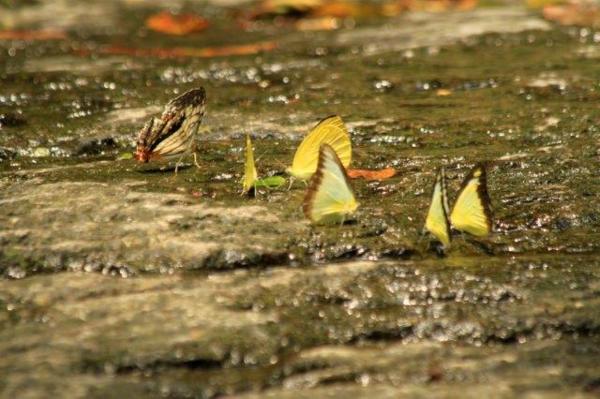 三、四月就可看到一群白粉蝶在菜田中飛舞,夏天在步道、溪水上或花草間更可欣賞到各種不同蝶兒蹤跡。蝴蝶分五科-鳳蝶科、灰蝶科、粉蝶科、蛺蝶科和弄蝶科。