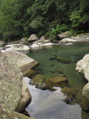 路途中只要有小路我們就會走至溪水邊欣賞著這藍天山谷下的溪水,溪水搭配著不同草木,呈現不同美麗風貌。